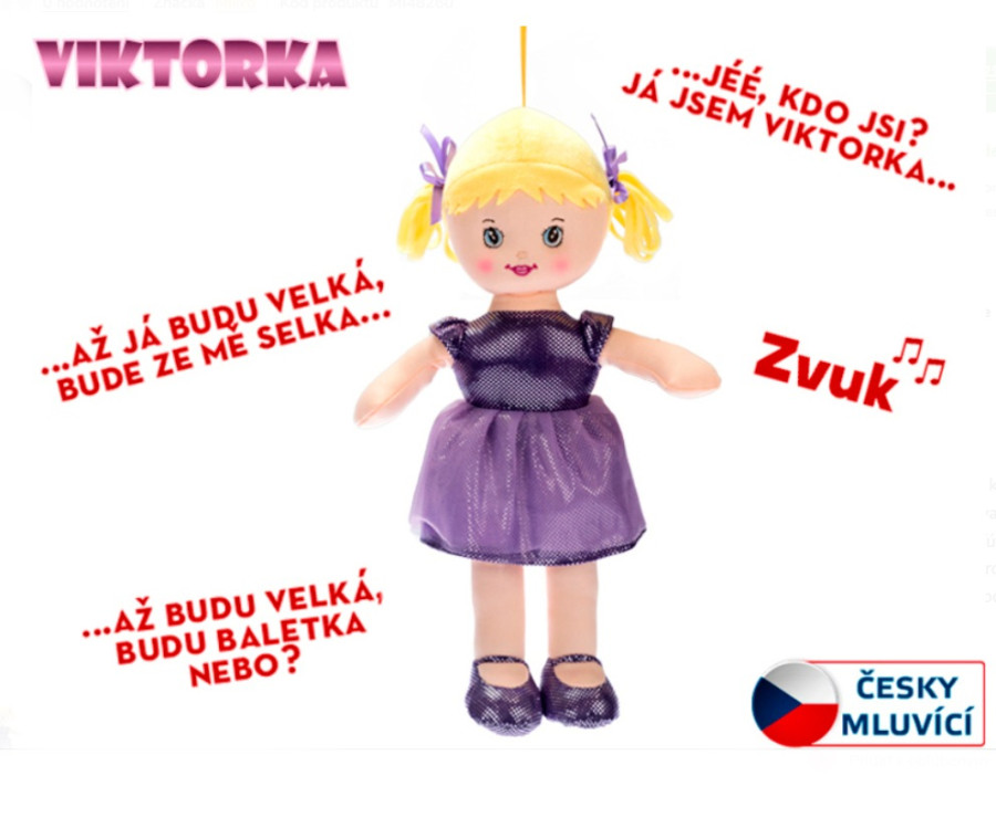Hadrová panenka Viktorka blondýnka, na baterie česky mluvící, 32cm