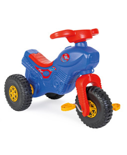 Dětská zábavná šlapací tříkolka se šlapátky umístěnými na předním kole. Nosnost tříkolky je 35 kg, má ergonomický design a mechanický klakson.