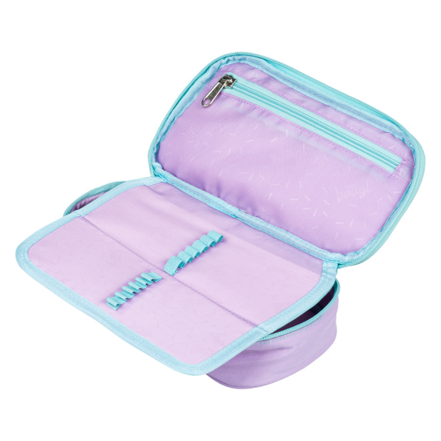 • Kompaktní penál na zip s prostornou hlavní komorou a dvojitou výklopnou chlopní nabízí dostatek prostoru pro psací potřeby i drobnosti. • Součástí penálu je také vnitřní kapsa a okénko na rozvrh hodin. • Pevná táhla a značkové zipy YKK zaručují vysokou odolnost. • Vyrobený z pevného a recyklovaného materiálu. • Penál je dodáván bez náplně.