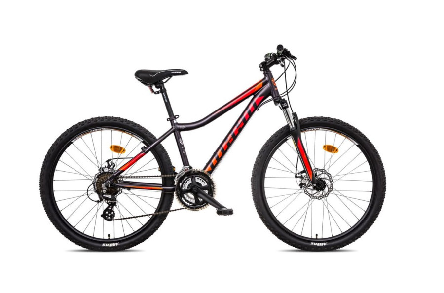 Kolo má dále 21 převodů, oszeno je komponenty Shimano Altus, mechanickými kotoučovými brzdami Saccon, hliníkové kliky PROWHEEL, JOYTECH AL náboje, AHEAD hl. služení a představec, DOUBLEWALL ráfky M.A.T.E. DWR20D.Velikostí kola, také výškou rámu se rozumí vzdálenost mezi středovou osou a koncem sedlové trubky rámu a udává se v palcích.