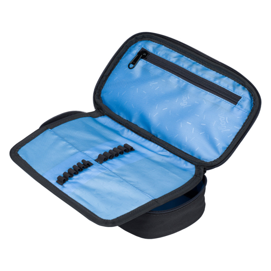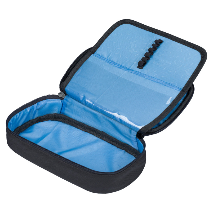 • Kompaktní penál na zip s prostornou hlavní komorou a dvojitou výklopnou chlopní nabízí dostatek prostoru pro psací potřeby i drobnosti. • Součástí penálu je také vnitřní kapsa a okénko na rozvrh hodin. • Pevná táhla a značkové zipy YKK zaručují vysokou odolnost. • Vyrobený z pevného a recyklovaného materiálu. • Penál je dodáván bez náplně.