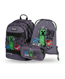 Školní batohový set MINECRAFT TNT s hmotností nepřesahující 900 g a popruhy na uchycení skateboardu, je ideální pro žáky již od třetí třídy ZŠ. Batoh má anatomicky tvarovaná záda s výztuží v oblasti beder a plně nastavitelné kompresní popruhy umožňují optimální přizpůsobení postavě.