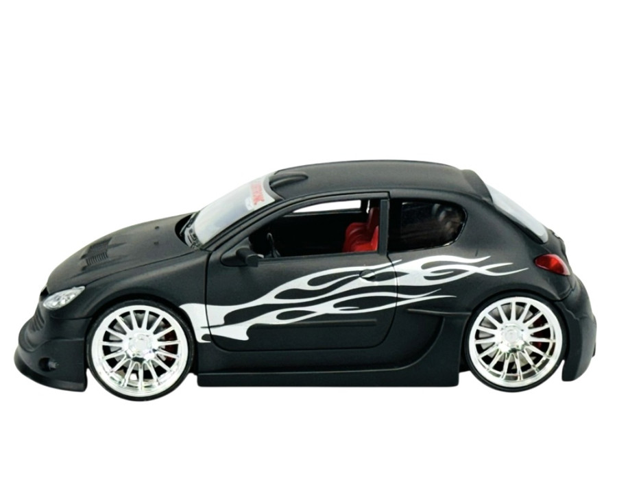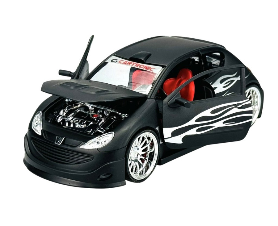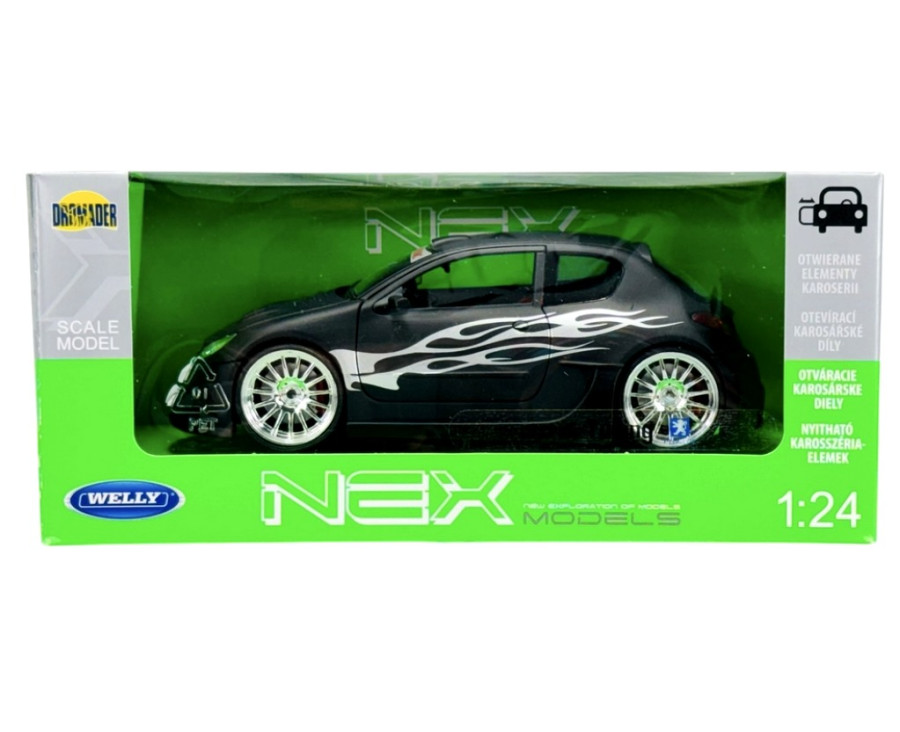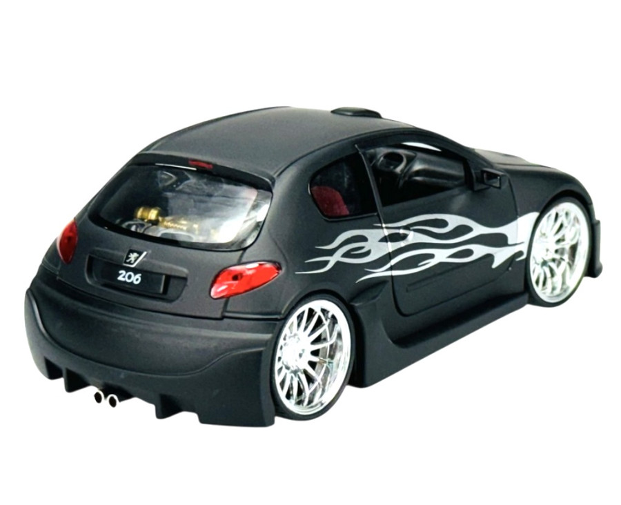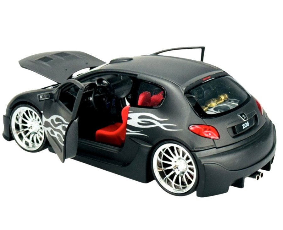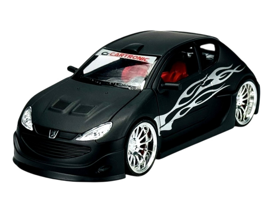 Model legendárního auta MOQ Peugeot 206 v tuningovém provedení v měřítku 1:24 značky Welly vyrobený z kovu a plastu. Model auta má otevírací dveře, otevírací kapota motoru, natáčecí přední kolečka a detailní zpracování karoserie včetně interiéru automobilu. Délka modelu je 15 cm.