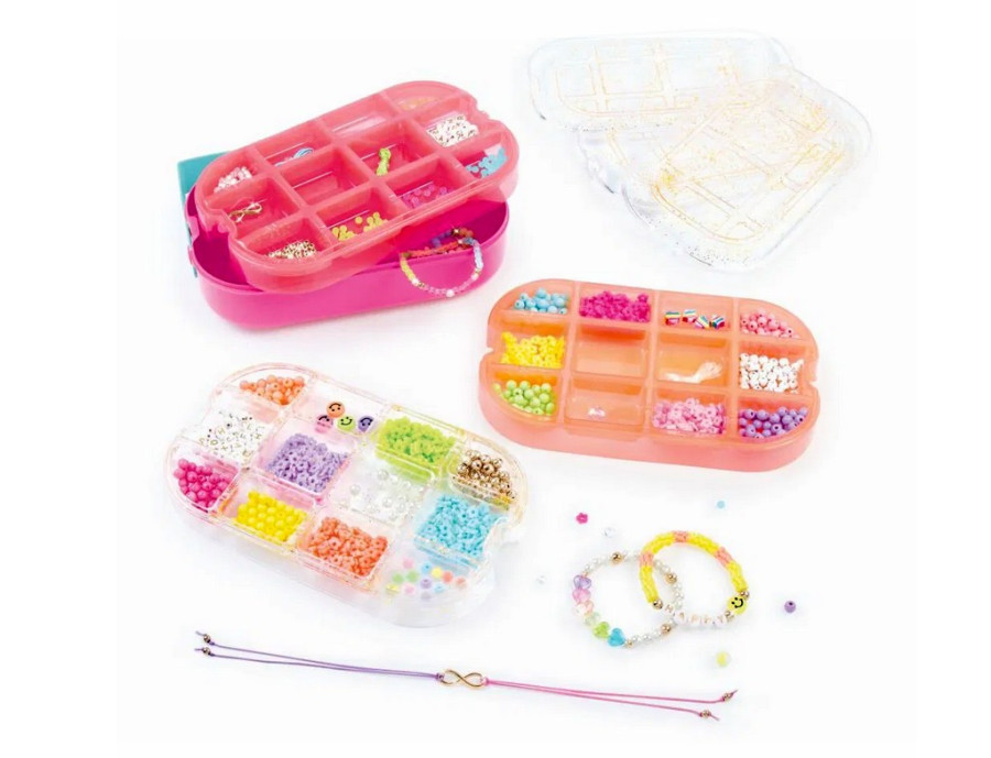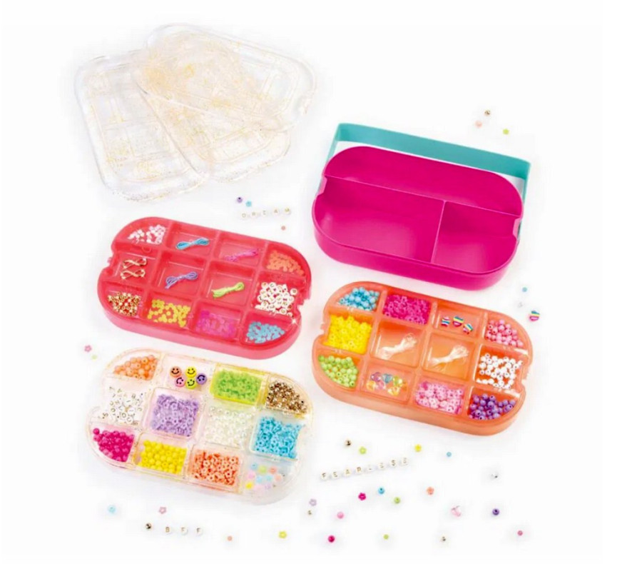 Buďte kreativní na cestách! Tento přenosný kufřík ve stylu bento krabice udrží korálky úhledné a organizované během tvoření i mezi nimi. Podnosy mají užitečné detaily, které pomáhají rozmístit vzory korálků, měřit délku šňůry a organizovat vybrané korálky pro navlékání.