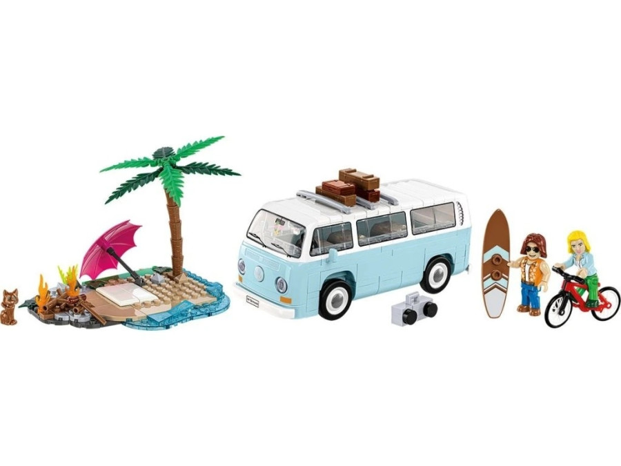 Postavte si unikátní sadu inspirovanou legendárními obytnými vozy ze 70. let, nalaďte se na atmosféru svobody a vytvořte si vlastní příběh o prázdninové cestě - od jízdy po horských silnicích na plném slunci až po kempování na břehu jezera.Sada COBI tuto jedinečnou atmosféru vytváří s mimořádnou pozorností k detailu a v licenci Volkswagenu. Barvy, silueta vozidla a stylový přívěs vytvářejí harmonický celek, který stavitele přenese do éry volných dovolených a pohodových dobrodružství.Obsah stavebnice: