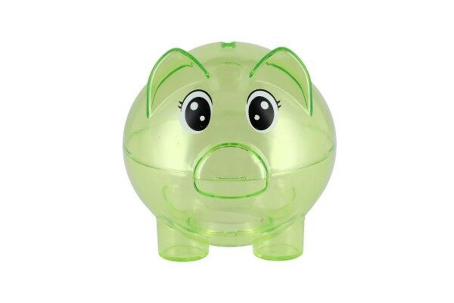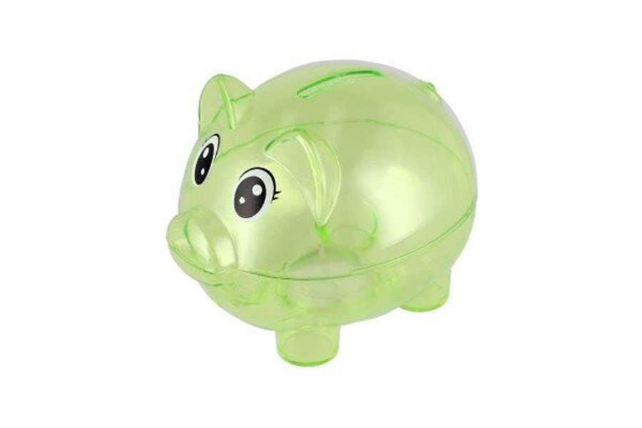 Průhledná plastová pokladnička prasátko zelené, 11x9cm