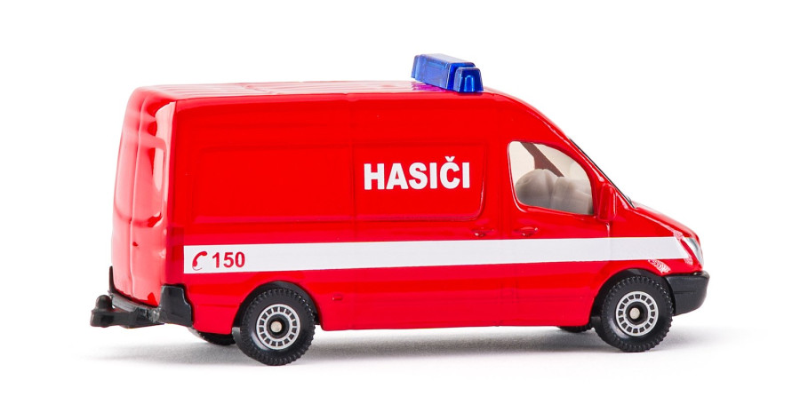 Kovový model hasičské dodávky Siku v česká verzi se vyznačuje realistickými detaily a je vyroben z tlakově litých kovových a plastových komponentů.