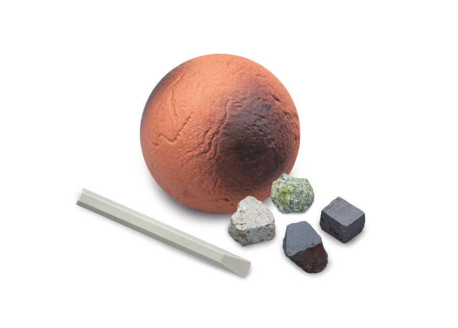 Svůj průzkum posuňte ještě dále a vykopejte blok sádry, kde odhalíte čtyři pravé marťanské horniny – andezit, magnetit, hematit a olivín – podobné minerálům, které na Marsu našly vědecké rovery.