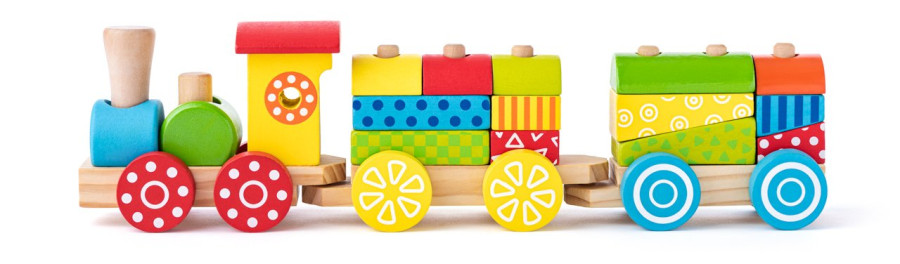Úkolem dítěte je nasunout kostky vlaku na tyčky tak, aby byl naložen celý náklad. Při této činnosti děti zdokonalují jemnou motoriku, logiku a koordinaci pohybů.