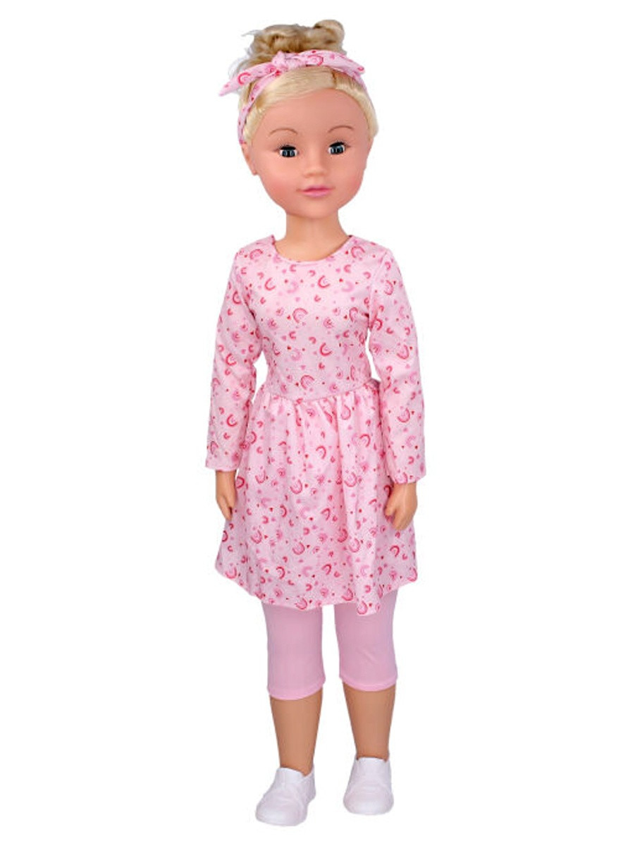 Mimořádná panenka ve velikosti 76cm. Poznejte svou novou kamarádku mezi panenkami. Podívejte, panenka umí i chodit a díky její velikosti ji můžete jednoduše vodit za ruku. Můžete spolu vyrazit na procházku.Panenka má mrkací oči.