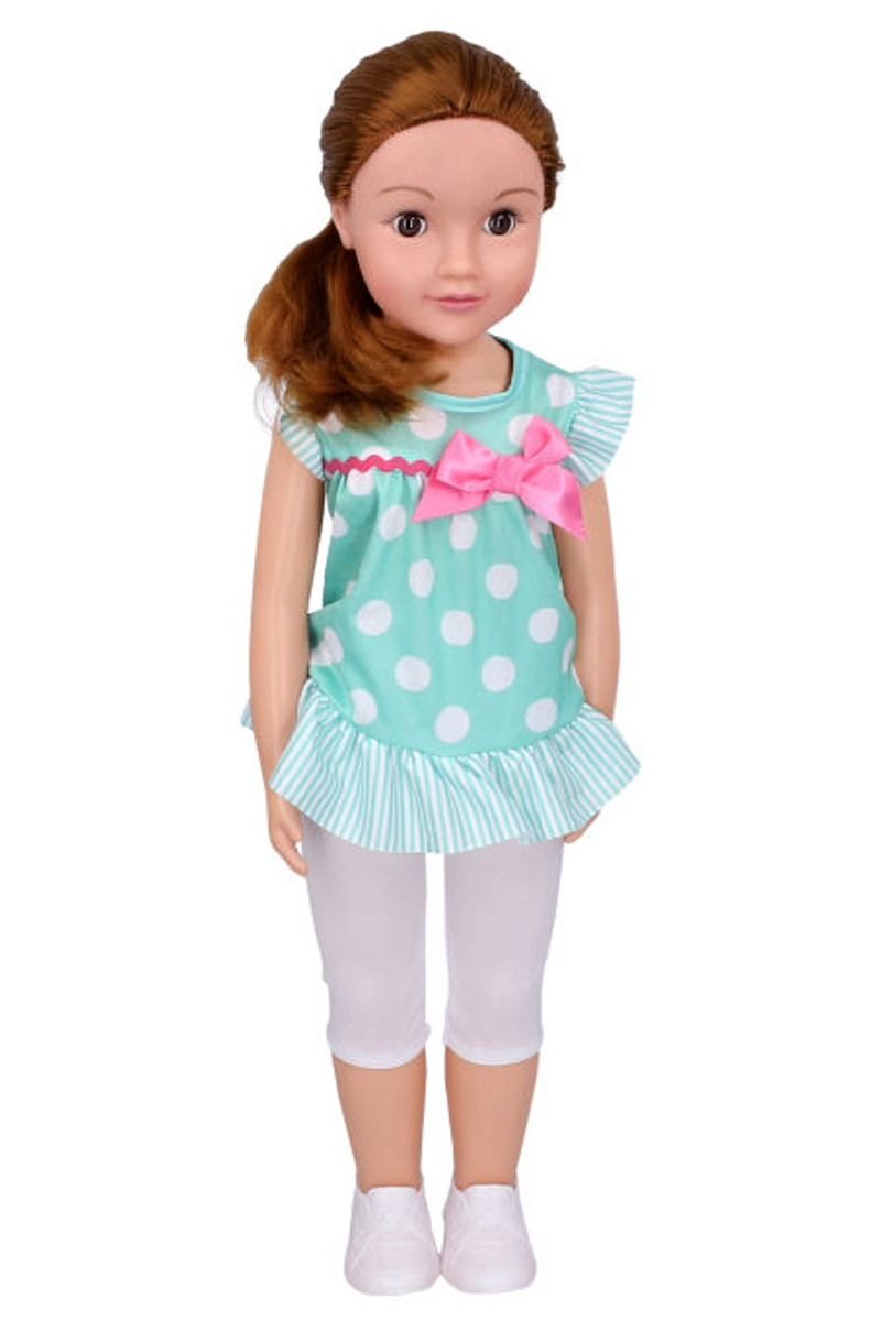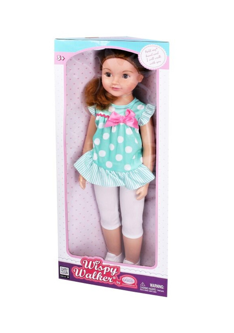 Chodící panenka s mašlí ve velikosti 70cm. Poznejte svou novou kamarádku mezi panenkami. Podívejte, panenka umí i chodit a díky její velikosti ji můžete jednoduše vodit za ruku. Můžete spolu vyrazit na procházku. Panenka má mrkací oči.