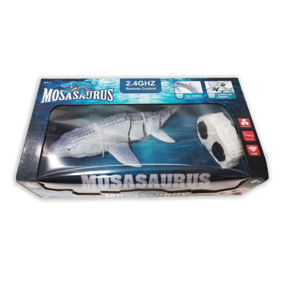 Obojživelný ještěr Mosasaurus na dálkové ovládání, který vypadá, leze i plave jako opravdový. Ještěr se pohybuje vpřed, do stran, na souši i ve vodě, má pohyblivý ocas.