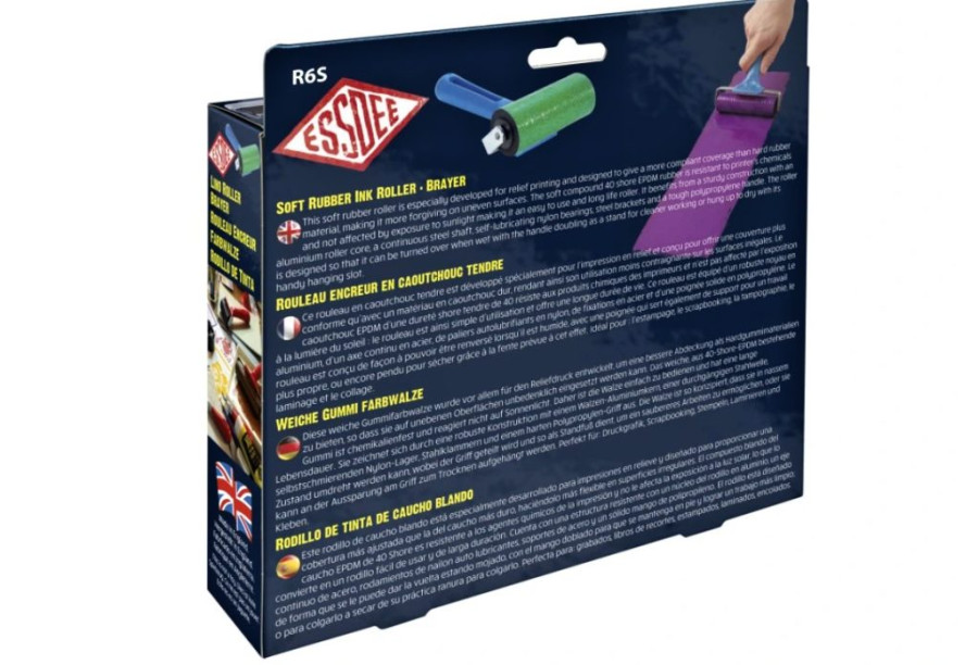 Profesionální váleček na linoryt, 20 cm (8"), baleno v papírové krabičce. Váleček na linoryt je vyroben z kvalitní měkké (40° shore) gumy (pryže), která je poddanější než u válečku z tvrdé a středně tvrdé gumy(pryže). Je ideální pro nerovné povrch a zajišťuje jejich dokonalé krytí barvou. Jeho hladký, strojem broušený gumový povrch EPDM pojme větší množství barvy. Váleček má hliníkové jádro, samomazná ložiska a pevnou ocelovou konzoli. Díky těmto výborným vlastnostem je odolný a spolehlivý. Plastová rukojeť je ergonomicky tvarovaná a pohodlně se drží v ruce.