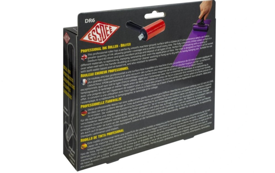Profesionální váleček na linoryt, 20 cm (8"), balený v papírové krabičce. Váleček je vyroben z vysoce kvalitní středně tvrdé (60° shore) gumy (pryže), která zajišťuje rovnoměrné nanášení linorytové barvy beze šmouh.