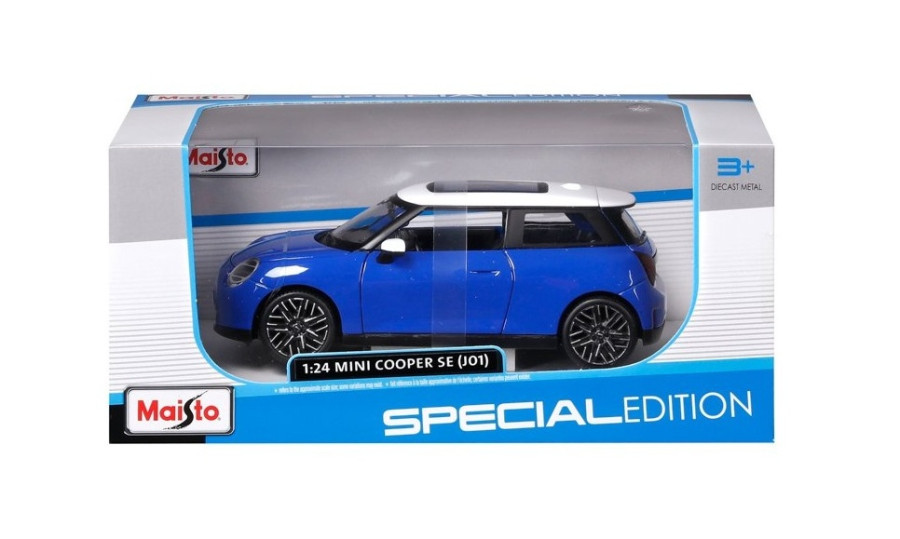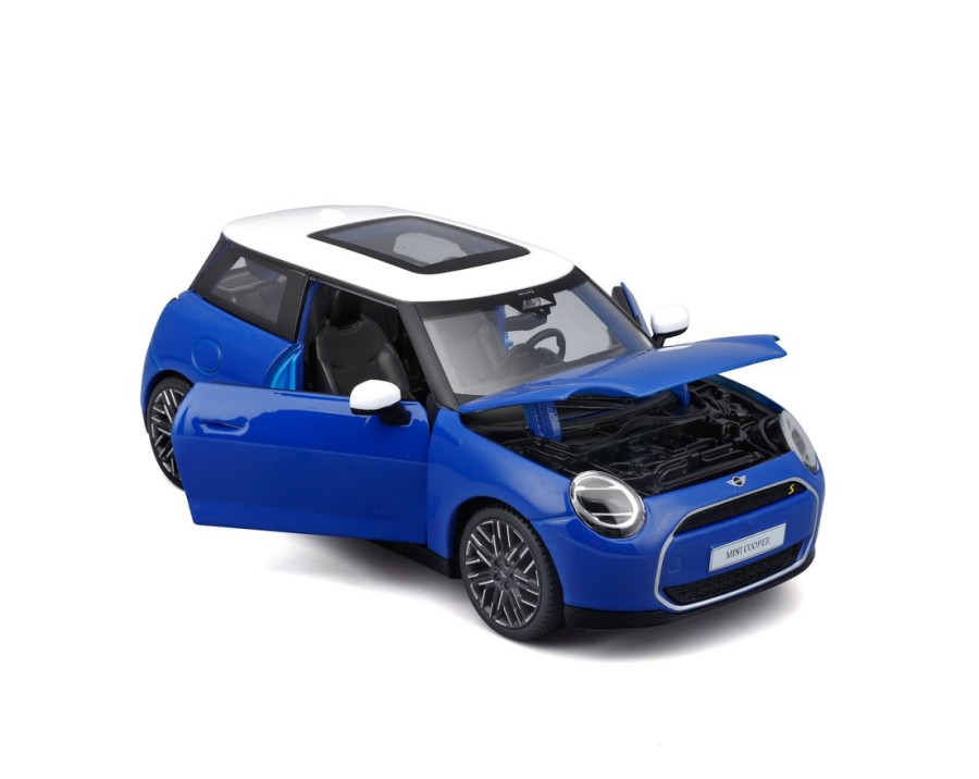 Kovový model auta Mini Cooper SE v měřítku 1 : 24 značky Maisto. Model autíčka Mini Cooper SE má detailní zpracování karoserie a interiéru. Na modelu se otvírají dveře.