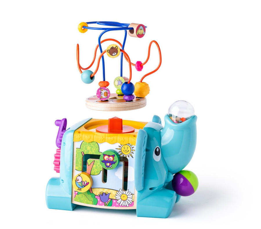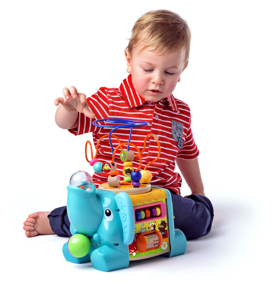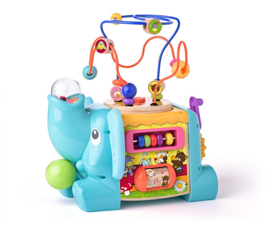 Na zádech nosí slon nádherný labyrint, který lze odejmout a děti si s ním mohou hrát samostatně. S touto hračkou děti procvičují nejen jemnou motoriku, trpělivost, přesnost, barvy, ale i soutěživost.