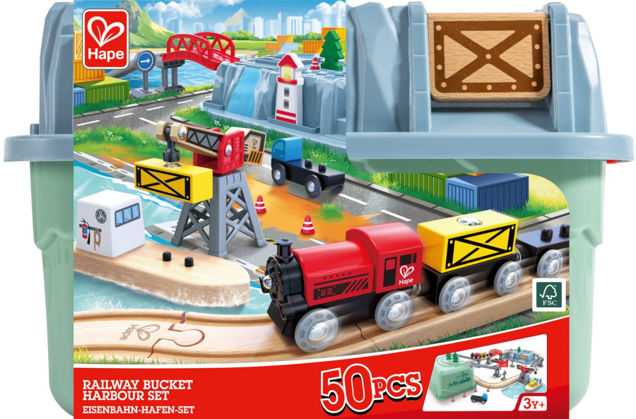 S touto krásnou vláčkodráhou si vaše ratolest užije dobrodružství, které se děje v přístavu. Pomocí jeřábu naloží důležitý náklad z lodi do vlaku a zpět. Po hře lze díly uložit do boxu, který se po otočení vzhůru nohama stane součástí herní scenérie.