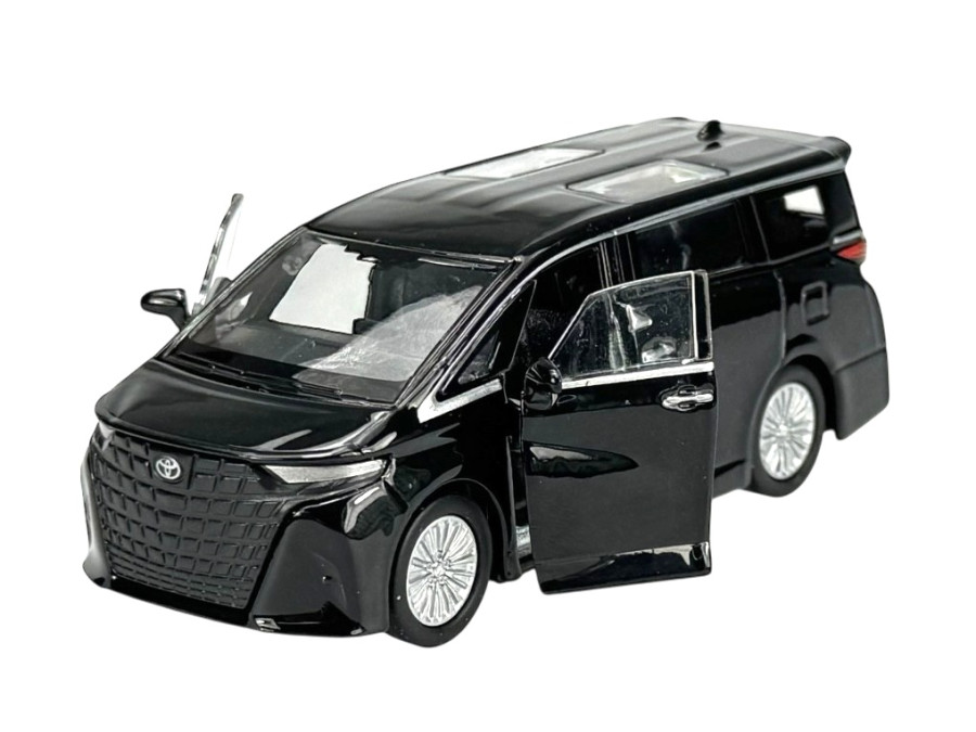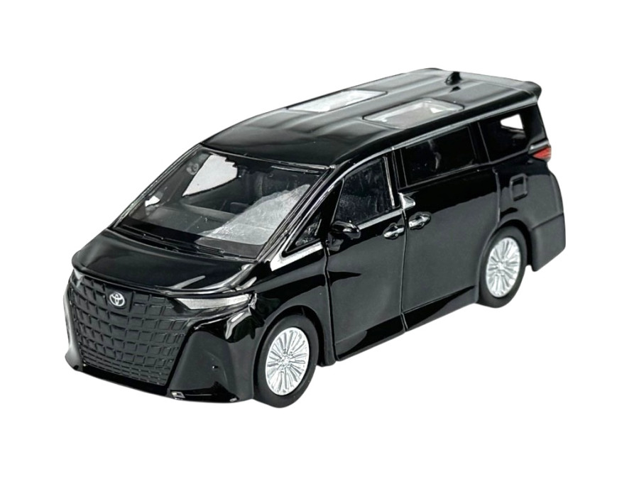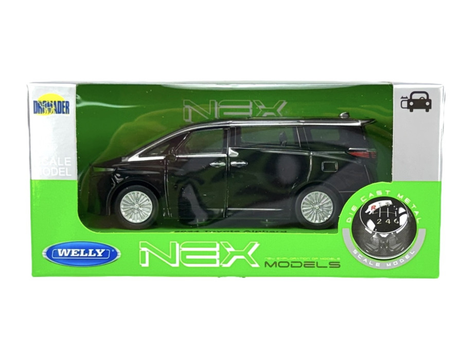 Kovový model auta Toyota Alphard 2024 v černé barvě a měřítku 1:34 značky Welly.