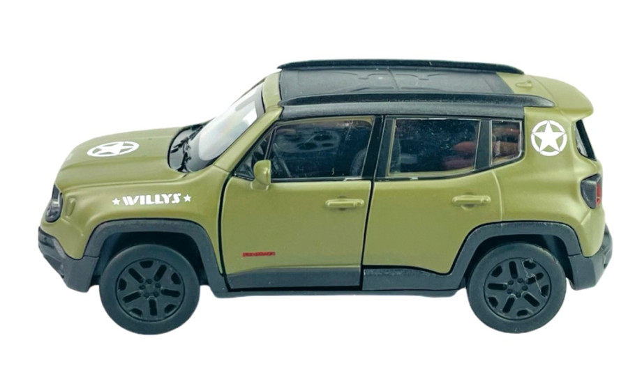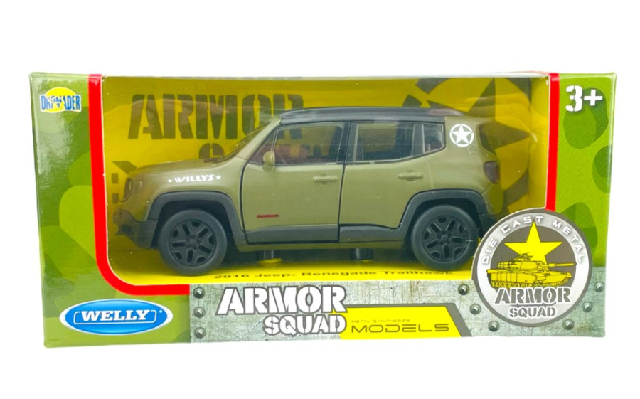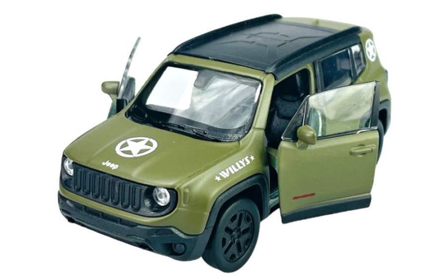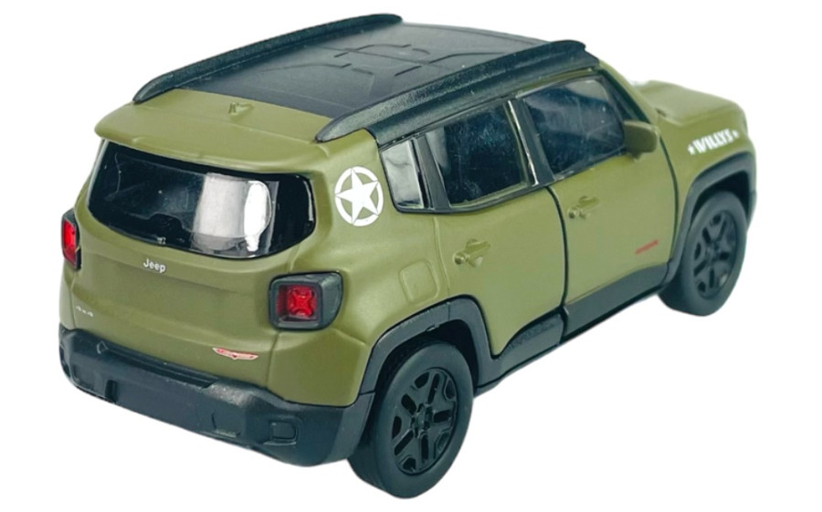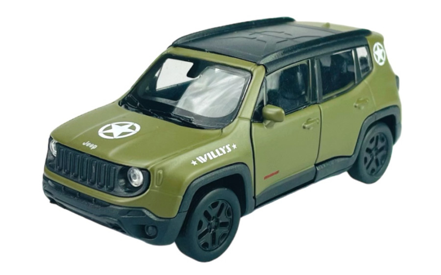 Kovový model auta Jeep Renegade Trailhawk v army barvě a měřítku 1:34 značky Welly.
