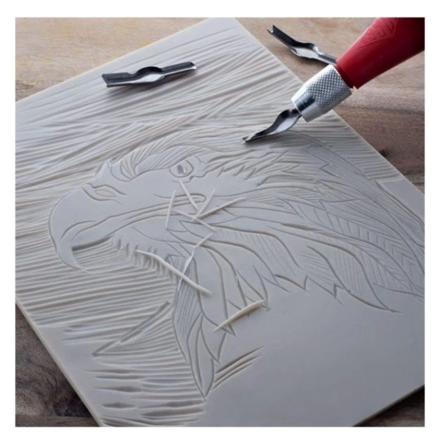Téměř bílá barva Vám umožní snadno předkreslit vlastní desing a usnadní rytí. S tímto linem Vám půjde snadno tisknout i po zakřivených plochách. V balení 2 ks. Vyrobeno v Anglii.