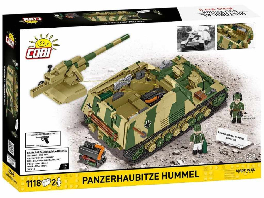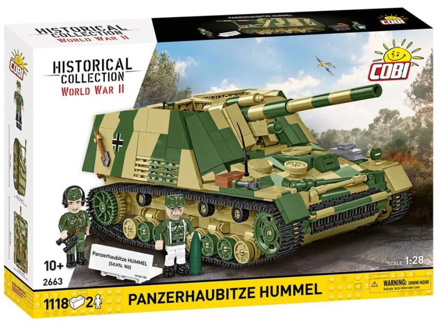 Stavebnice Cobi 2663 Vám umožní sestavit model německého samohybného děla Hummel (německy "čmelák") z 2. světové války. Hlavní zbraní samohybného děla byla 150 mm houfnice sFH 18.