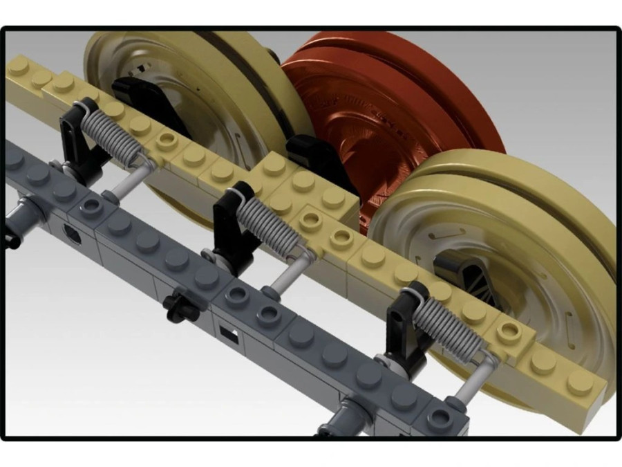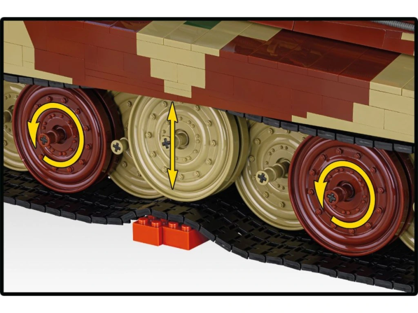 Uvnitř se nachází mnoho detailů včetně několika druhů munice. Podvozek tanku je vybaven odpružením a zesílením vyrobeným z kompozitních vláken. Nezavislé zavěšení pojezdových kol překonavá překážky odpružením tak, jak tomu bylo u skutečného tanku.