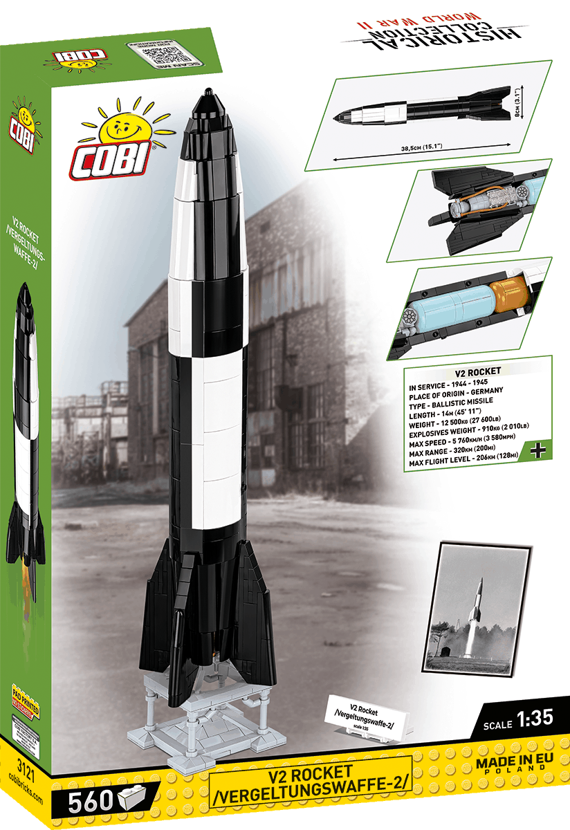 Raketa V2 je jednou z nejznámějších tzv. zázračných zbraní „Wunderwaffe“, které měly zvrátit průběh války. Tato konstrukce dodnes fascinuje mnoho nadšenců do historie a 2. světové války. Na přání fanoušků přinášíme legendární raketu V2 v měřítku 1:35.