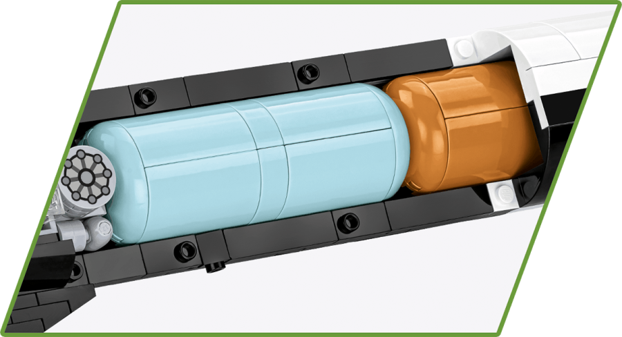 Samotná raketa má odnímatelný kryt, pod kterým se nachází reprodukovaný interiér: výkonný raketový motor, palivová nádrž a hlavice s výbušninou!