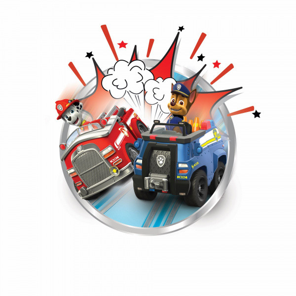 Autodráha Carrera FIRST dlouhá 2,9m s auty Tlapková Patrola Chase a Marshall, pro děti od 3 let, na baterie, obsahuje rovinky, zatáčky, bránu pro větší zábavu při jízdě, ovladače a dekorace s tématikou Tlapková Patrola. Délka trati: 2,9 m Rozměry po sestavení: 114 x 88 cm