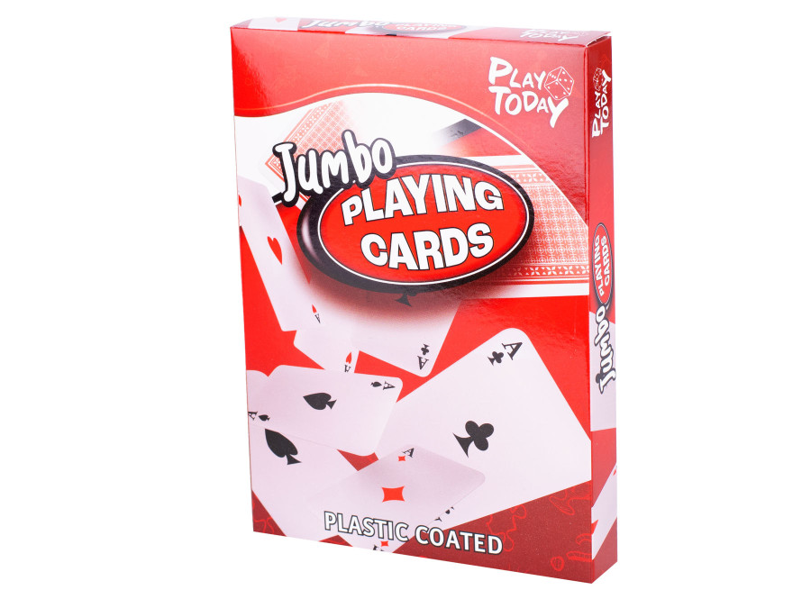 Maxi hrací karty jsou pro všechny věkové kategorie. Jedná se o ve karty, které můžete sehnat. Skvěle si zahrajete a užijete si asi spoustu legrace, jelikož hra se stane doobravdy netradiční. V balíčku je standardní sada 54 karet a každá z nich má rozměr 16,5x11,5 cm.