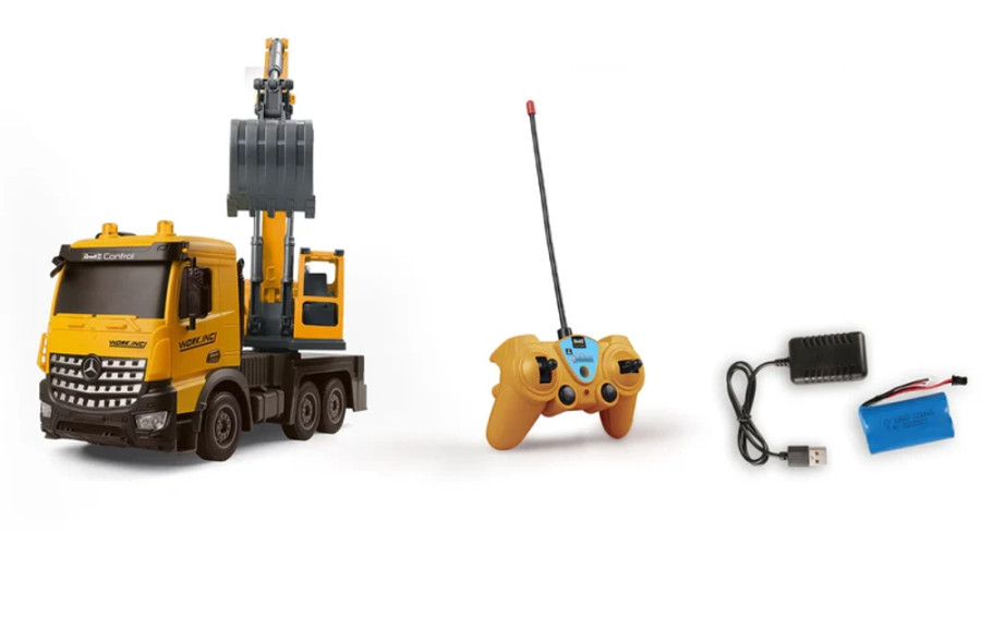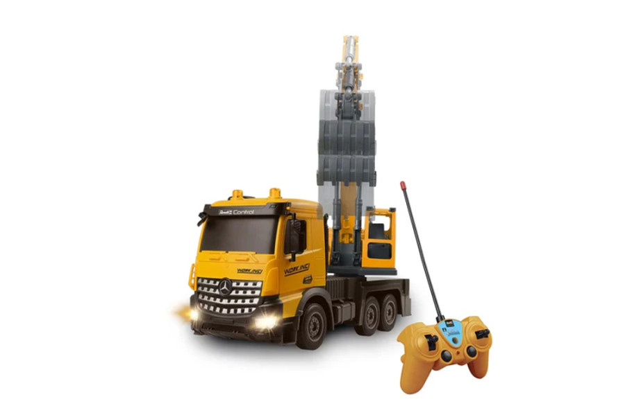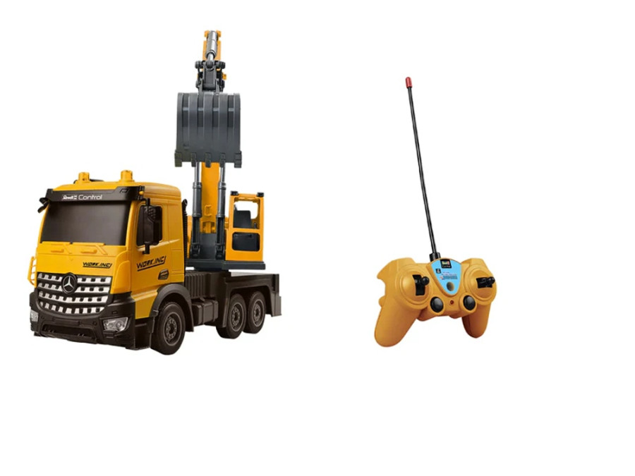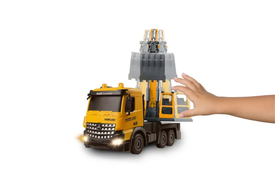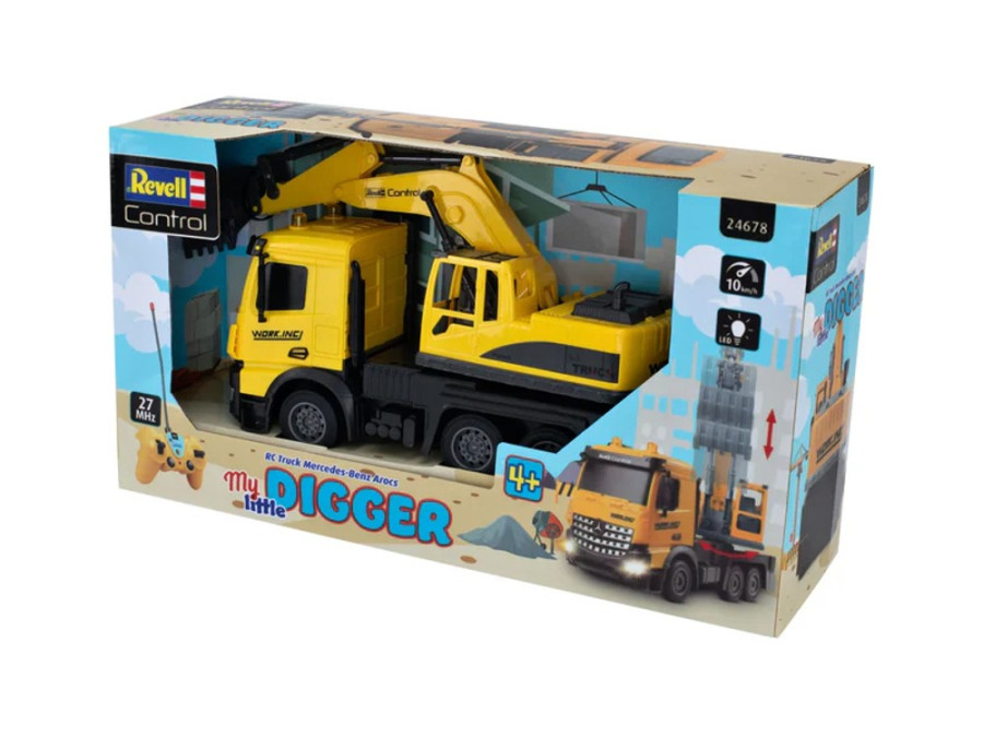 RC Truck Mercedes-Benz Arocs My Little Digger je dokonalá hračka na staveniště pro malé stavební dělníkyRC nákladní auto Mercedes-Benz Arocs „My Little Digger“ od Revell Control nabízí jedinečný zážitek ze hry pro malé stavitele. Díky mimořádné bohatosti detailů poskytuje tento výrobek při hře realistický pocit. Je speciálně navržen pro děti od 4 let a dokonale kombinuje zábavu a učení.S délkou 32 cm, šířkou 12 cm a výškou 20 cm je „Můj malý bagr“ ideální pro malé ručičky. Vozidlo se ovládá dětským dálkovým ovladačem s frekvencí 27 MHz a dosahuje rychlosti přibližně 10 km/h - ideální pro malé řidiče. Přední osvětlení navíc zajišťuje, že zábava neustane ani za zhoršených světelných podmínek.Za zmínku stojí zejména funkce pracovního bagru RC vozíku, který se ovládá pomocí dálkového ovládání. Konstrukci bagru lze otáčet ručně, což poskytuje ještě větší interakci a zábavu.