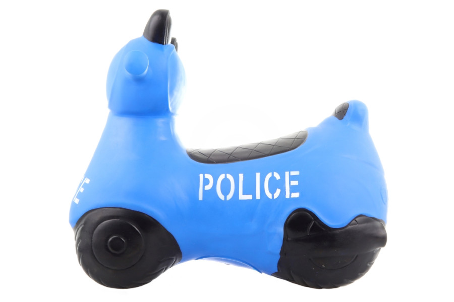 Dětské gumové hopsadlo ve tvaru motorky Policie v modré barvě pro děti od jednoho roku věku. Hopsadlo má pozitivní vliv na vývoj dítěte, rozvíjí rovnováhu, podporuje koordinaci paží a nohou, posiluje páteř. Bude také fungovat jako rehabilitační produkt formující siluetu dítěte.