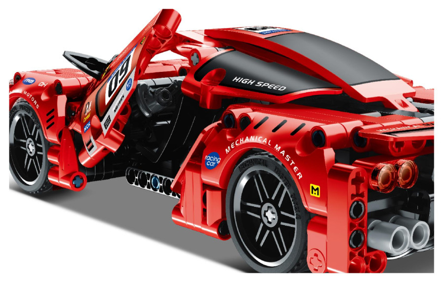 Postavte si detailně propracované červené sportovní auto s funkčním natahovacím (pull-back) motorem – natáhněte ho dozadu a sledujte, jak vystřelí vpřed jako skutečný závodník. Model zaujme sportovním designem, otevíracími prvky a kvalitním zpracováním.