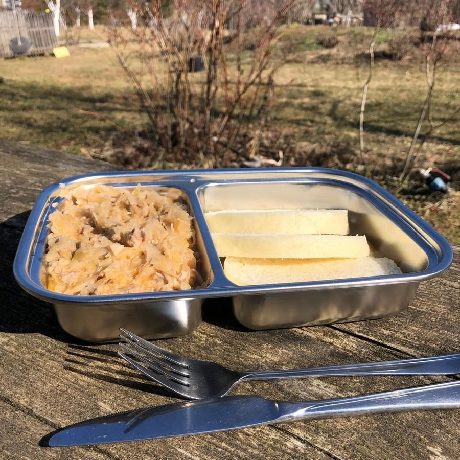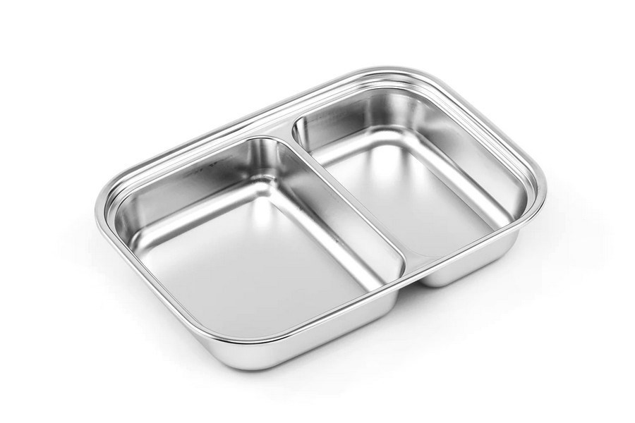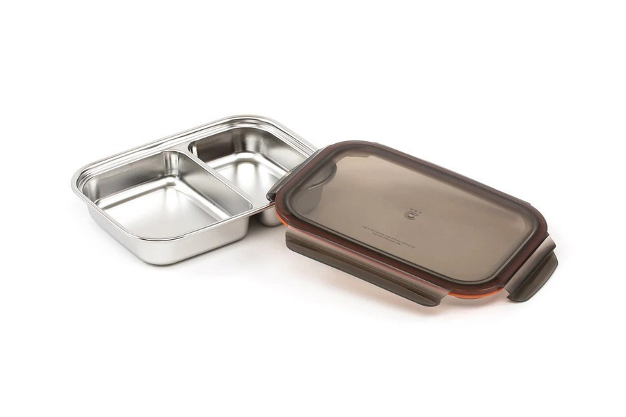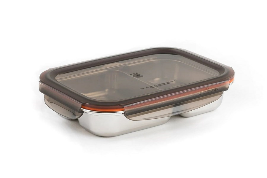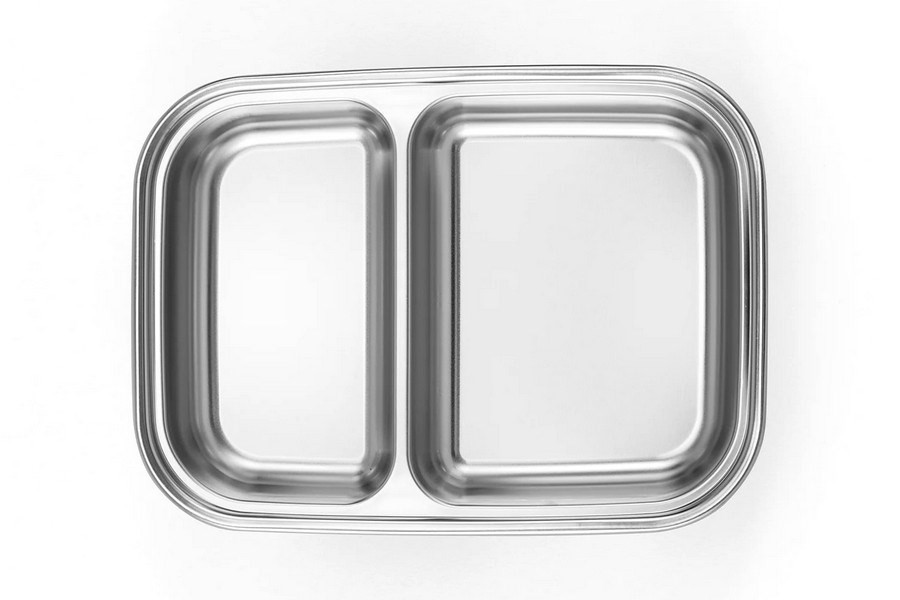 Dóza je předělená na 2 časti ("misky") a má gumovou prepážku, která těsní jednotlivé misky až po víčko, tím se jídlo v dóze nezmíchá.