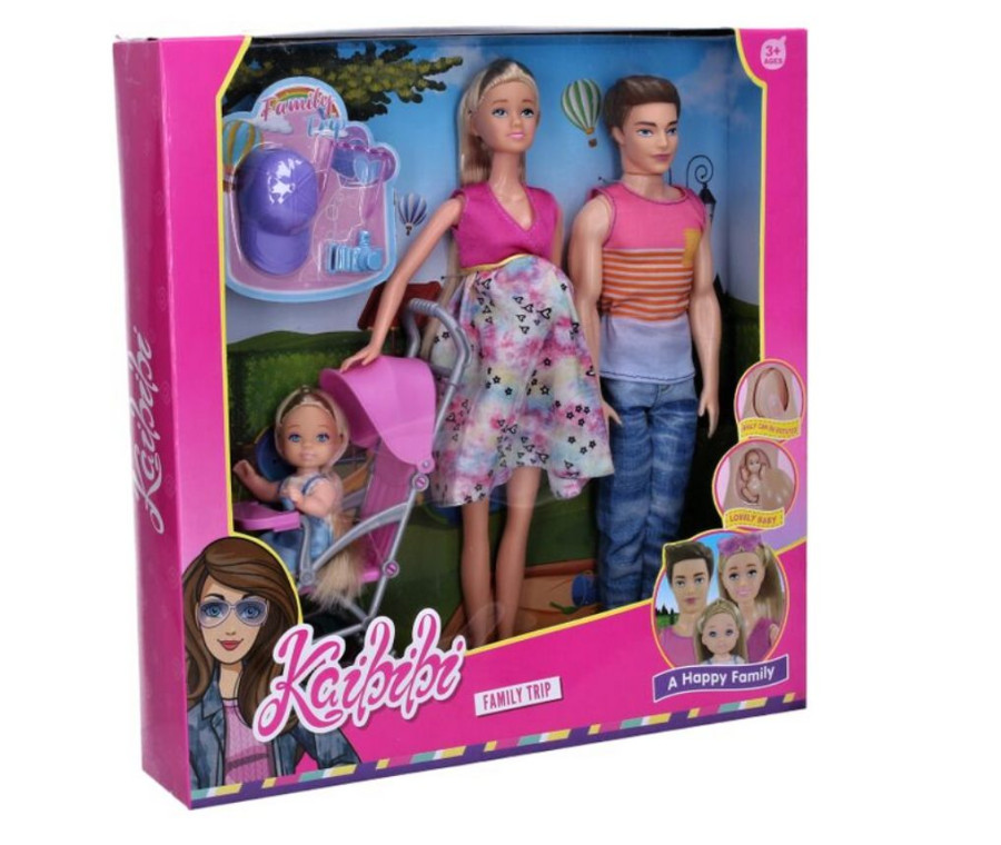 Obsahuje těhotnou panenku s manželem, malou holčičku, miminko, kočárek, doplňky pro panenku. Panenka má v břiše malé miminko, které jde vyjmout. Bříško jde otočit na ploché, nebo těhotné s miminkem vevnitř.