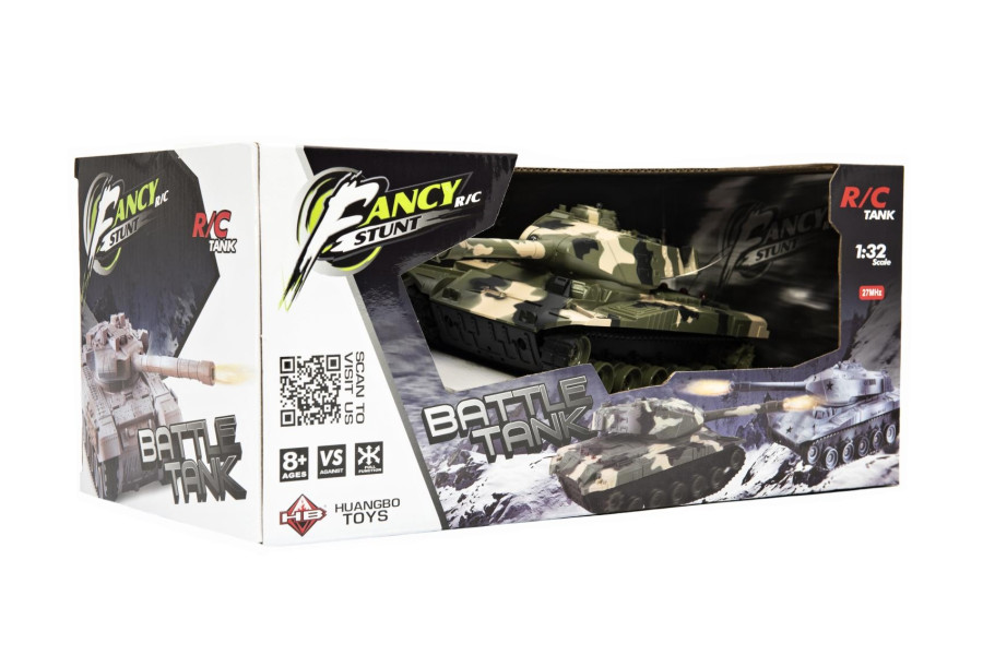 Plastový tank vhodný pro tankovou bitvu. Tank vydává zvuky, střílí, otočná věž se otáčí o 360 stupňů, svítí. Kdo ztratí všechny "životy", prohrál. Hlaveň vydává zvuky.