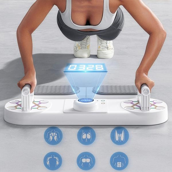 Jeden, kompaktní přístroj pro efektivní domácí trénink paží a břicha. DBP03 kombinuje stabilní desku pro plank, podpěry na kliky s více nastaveními a chytrý počítač s optickým (IR) senzorem přiblížení, který automaticky počítá opakování.