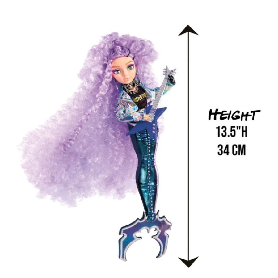 Panenka Mermaze Mermaidz™ Winter Waves™ má okouzlující ocas. Panenka má unikátní ploutev, která mění barvu, když se ponoří do ledové vody. Její ploutev se mění z lesklé růžové na přechodovou růžovou a modrou.