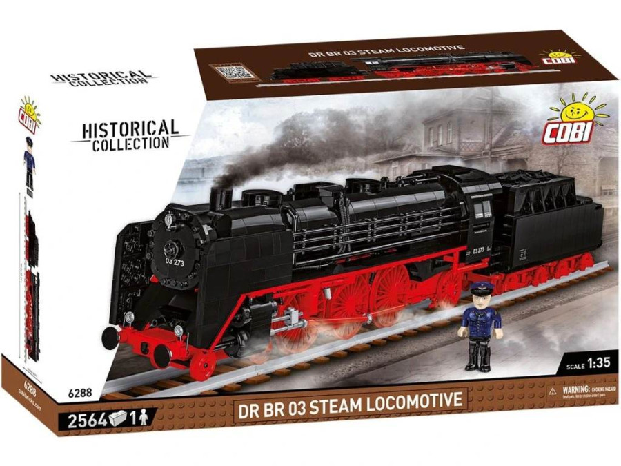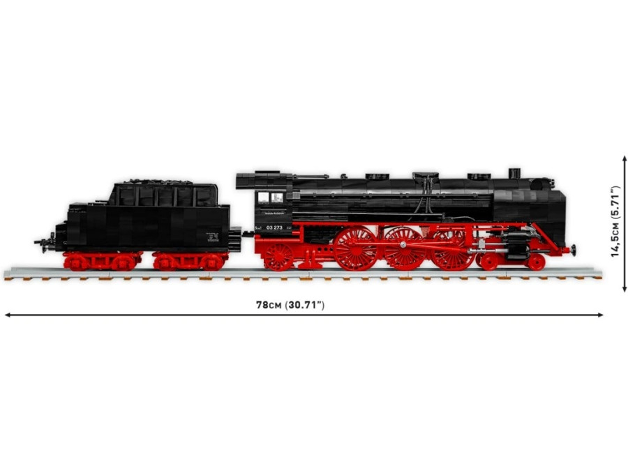 Postavte si model německé parní lokomotivy DR BR 03 z 2. světové války. Model je v měřítku 1:35 a měří 78 x 9 x 13,5 cm. Má mnoho funkčních částí. Balení obsahuje 2 564 kostek stavebnice a figurku strojvůdce.