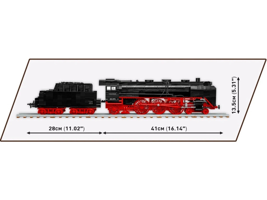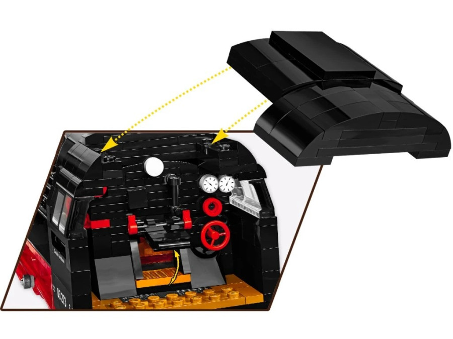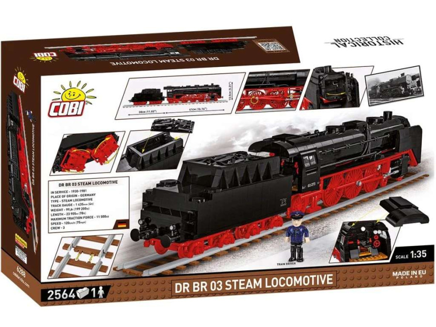 Model je ozdoben detailními potisky zobrazujícími značení lokomotivy Deutsche Reichsbahn a technické tabulky. Standardní verze obsahuje figurku strojvedoucího Deutsche Reichsbahn v klasické železniční uniformě a šest úseků rovných kolejnic, na kterých lze lokomotivu vystavit. Kolejnice od COBI jsou plně kompatibilní s kolejemi jiných značek stavebnic.