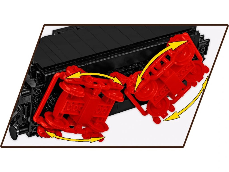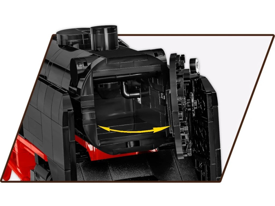 Velká kola určená pro rychlíkové lokomotivy okamžitě upoutají pozornost. Parní lokomotiva tvarem přesně odpovídá původnímu modelu. Odolná konstrukce dělá lokomotivu těžkou, ale zároveň perfektně funguje. Systém otočných ozubených kol umístěných v rámu roztáčí kola spojená příhradovými nosníky s parním pístem jako u skutečné lokomotivy! Model má tendr na uhlí.