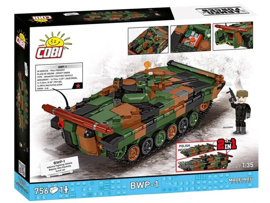 Postavte si symbol polských mechanizovaných sil, a to ikonické bojové vozidlo pěchoty v polských nebo ukrajinských barvách v měřítku 1:35.Se stavebnicí COBI si můžete postavit věrně reprodukované bojové vozidlo pěchoty BWP-1, které si získalo obrovskou popularitu nejen mezi vojenskými nadšenci. Model byl navržen s důrazem na detail a realistické konstrukční prvky, takže postavené vozidlo vypadá působivě jak na sběratelské poličce, tak i během hry.