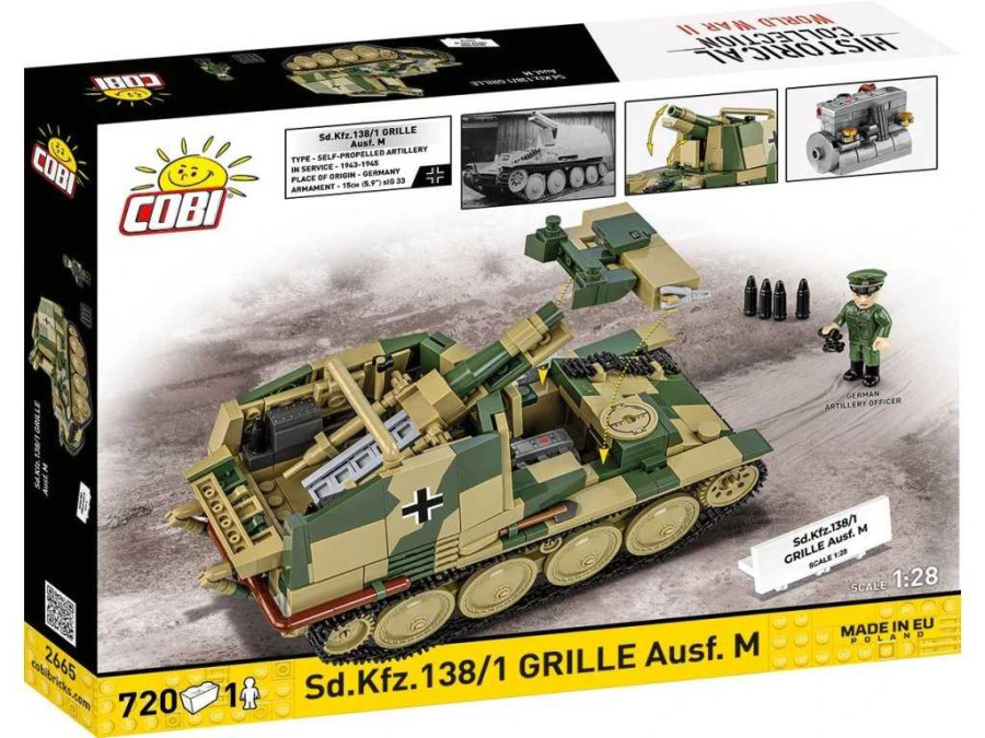 Stavebnice Cobi 2665 je historií postavenou z kostek s kterou objevíte německou samohybnou houfnici Sd.Kfz. 138/1 Grille Ausf. M z 2. světové války v měřítku 1:28.