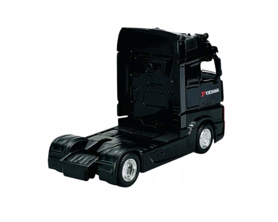 Model je vyrobený z litého kovu s plastovými detaily. Přívěs kamionu je vybaven sklápěcí rampou pro stavební vozidla.