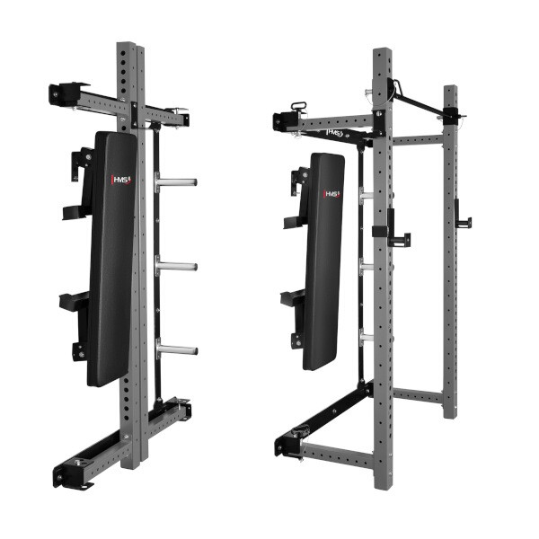 Power Rack KLT34 HMS Fitness je navržen speciálně pro domácí posilovny, kde hraje klíčovou roli úspora prostoru, vysoká funkčnost a bezpečnost. Díky skládání rámů k sobě nevyžaduje vysoký strop, a je proto ideální do bytů, sklepů i garáží.