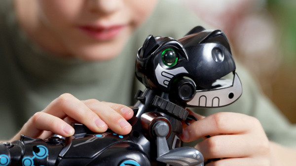 Robotický dinosaurus na dálkové ovládání, reaguje na gesta i na dotyky. Dinosaurus má 2 módy, a to hodný a zlý. Velikost hračky je 34cm.Obsah balení je jeden kousek robotického dinosaura s vysilačkou a míč.