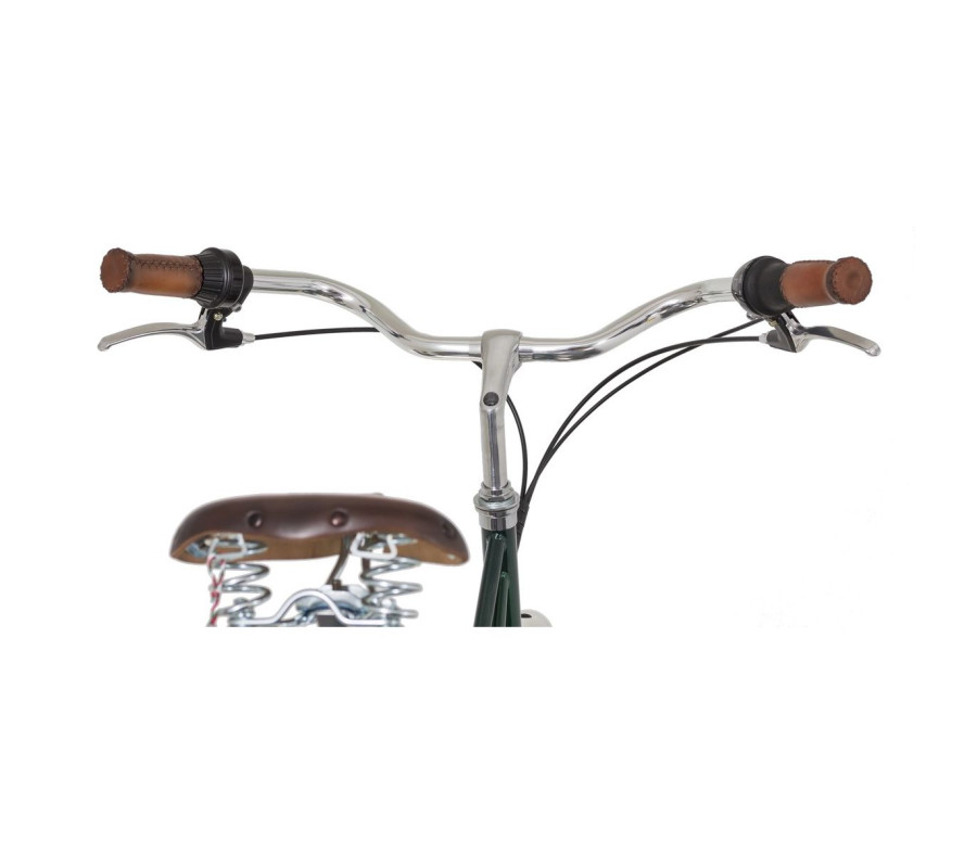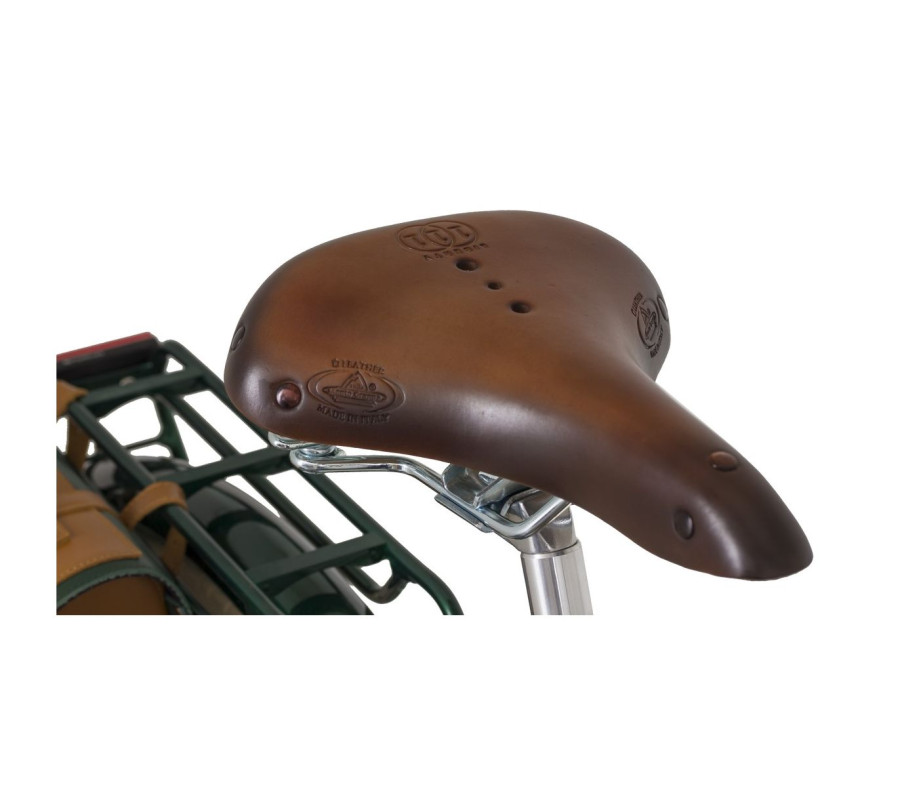 Luxusným doplňkem je sedlo a rukojeťě, které jsou ručně vyrobené v Itálii z pravé kůže. Řazení a zvonek jsou elegantně integrovány do otočných rukojetí, čímž neruší čisté linie řídítek. Blatníky a nosiče jsou společně integrované do jednoho celku s minimálním počtem upevňujícícch prvků.
