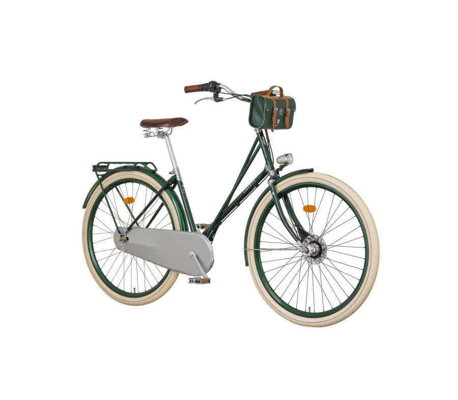 Luxusným doplňkem je sedlo a rukojeťě, které jsou ručně vyrobené v Itálii z pravé kůže. Řazení a zvonek jsou elegantně integrovány do otočných rukojetí, čímž neruší čisté linie řídítek. Blatníky a nosiče jsou společně integrované do jednoho celku s minimálním počtem upevňujícícch prvků.