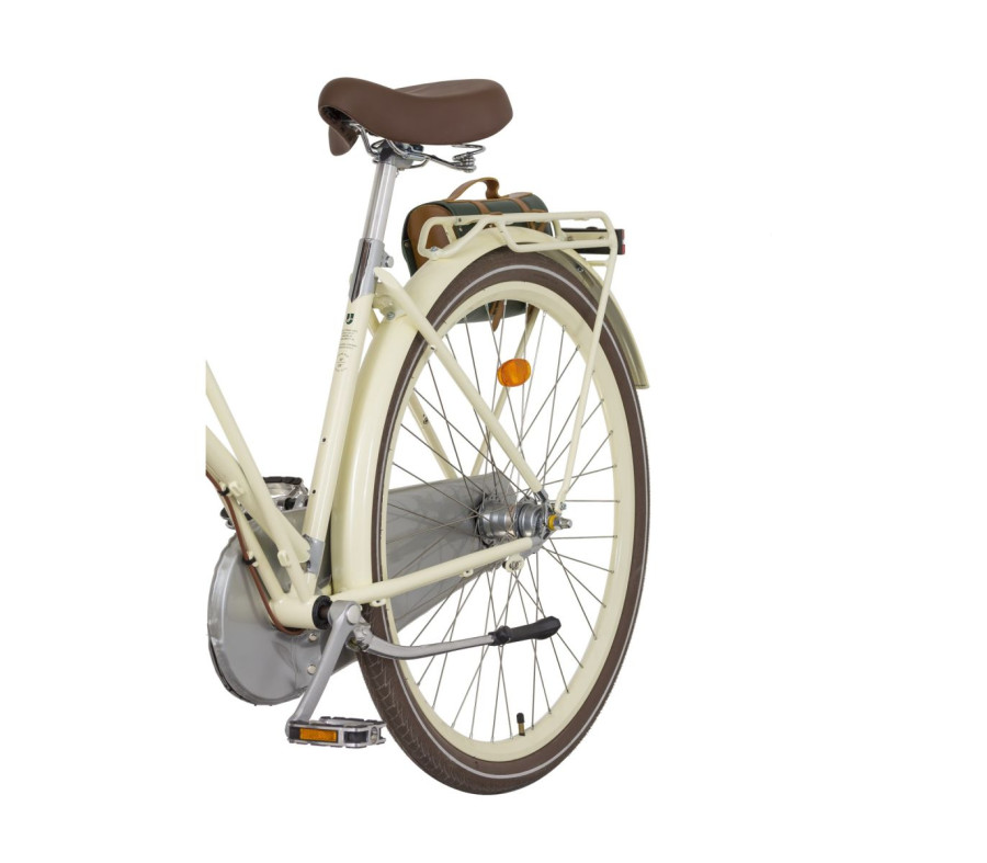 Sedlo a rukojeti z EKO kůže poskytují vysoký komfort a zároveň ladí s celkovým luxusním vzhledem kola. Řazení a zvonek jsou elegantně integrovány do otočných rukojetí, čímž neruší čisté linie řídítek.