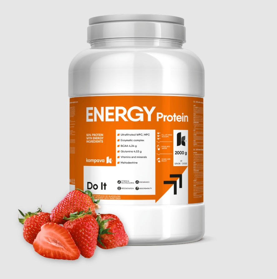 Je obohacený o anabolizující látky jako L-glutamin a BCAA, které jsou potřebné při růstu svalové hmoty, ochraně svalstva a při regeneraci po náročném tréninku, kromě toho dodají sportovci potřebnou energii. Enzymový komplex obsažený v ENERGY Protein zlepšuje jeho vstřebávání, využitelnost všech nutričních látek v něm obsažených a zabraňuje nadýmání.